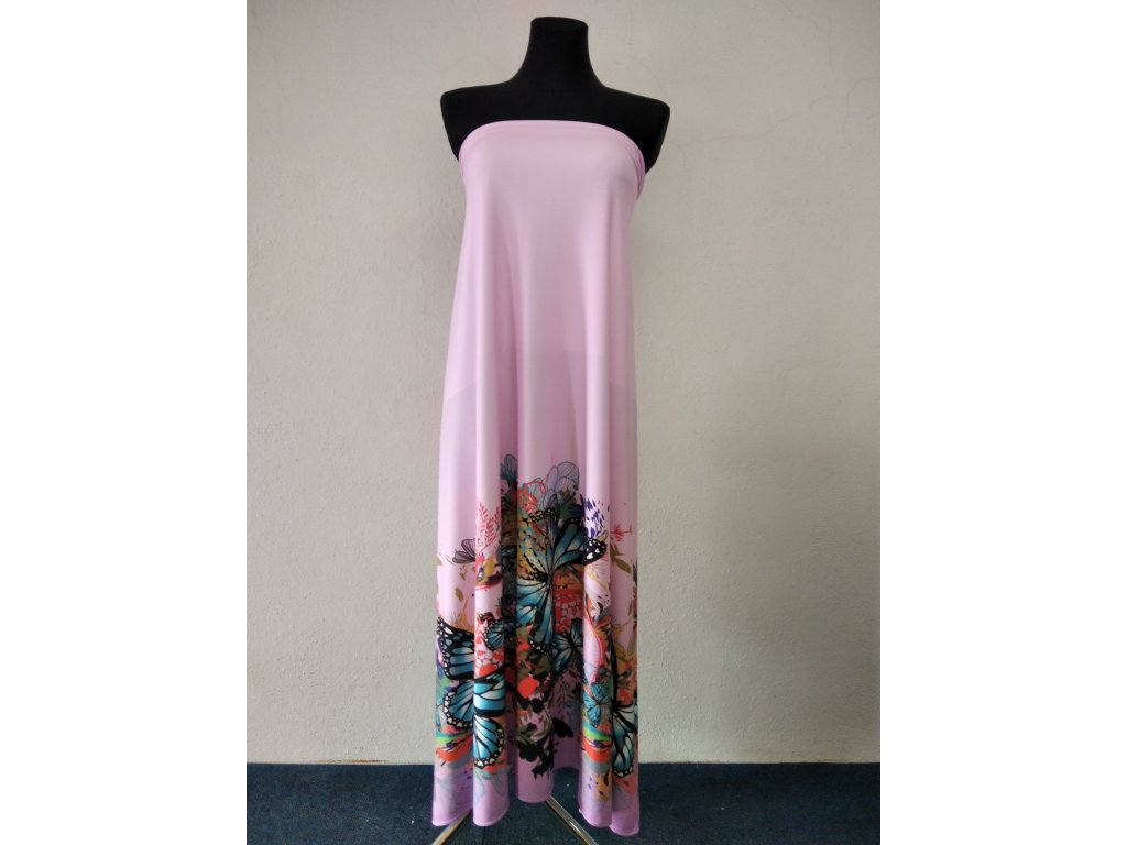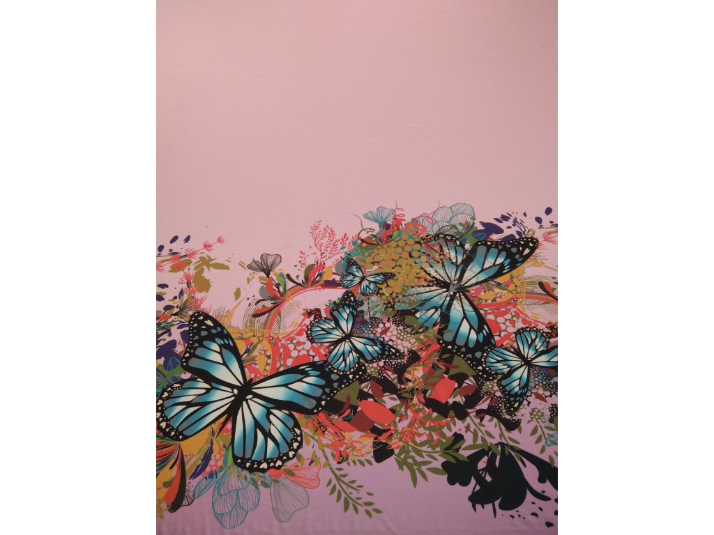 Hladký rychleschnoucí polyesterový úplet je velmi příjemný na dotek - s potiskem motýlů v borduře.