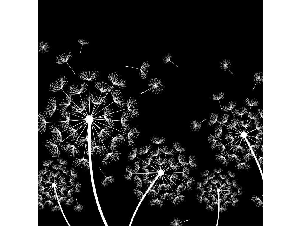Hladký rychleschnoucí polyesterový úplet je velmi příjemný na dotek - s potiskem pampeliškových padáčků v borduře.